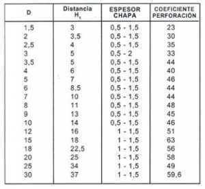 Espesores: desde 0,5 a 12 mm de ancho (según perforación).