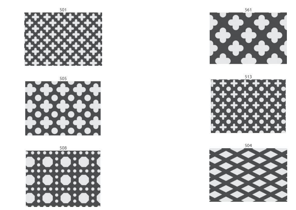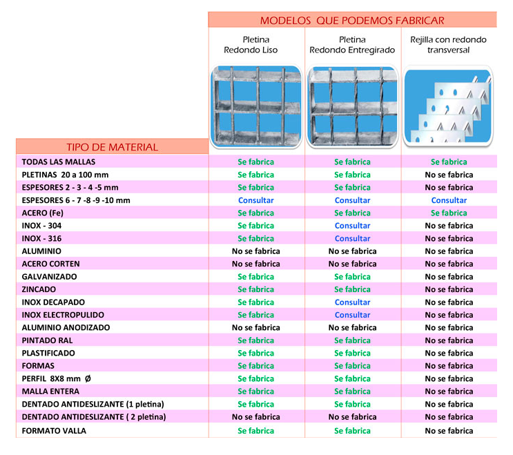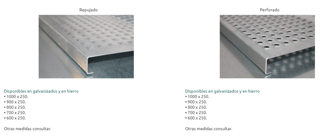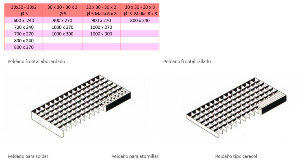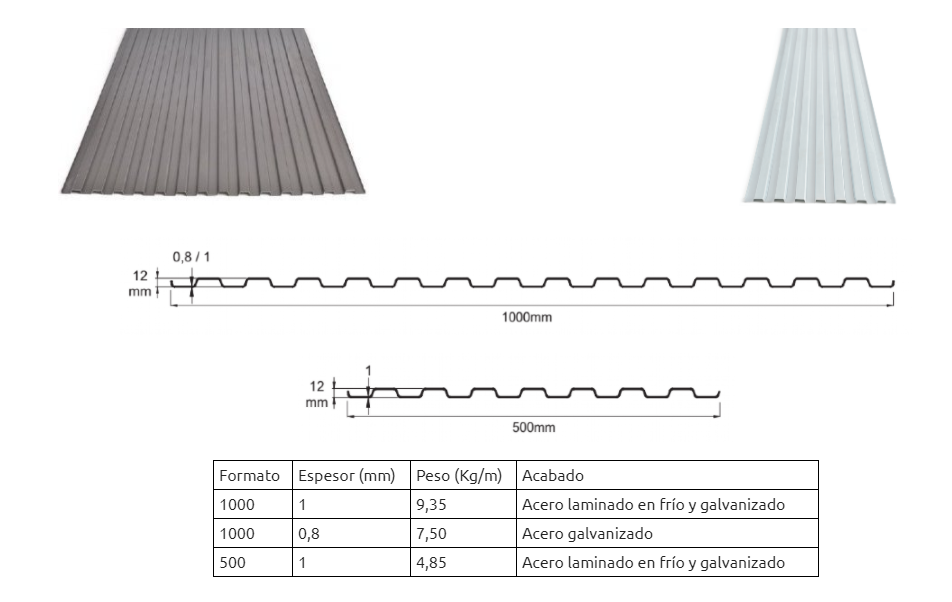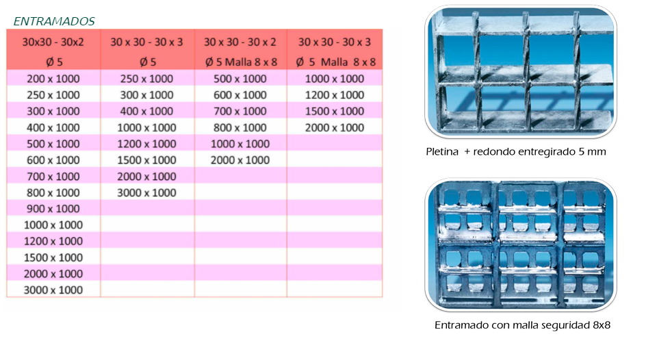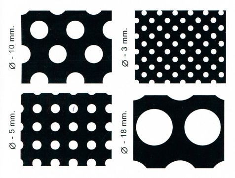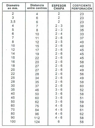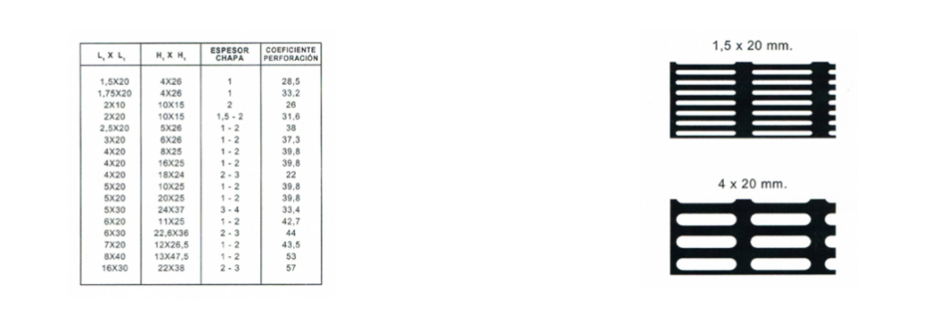 Espesores: desde 0,5 mm a 12 mm (según perforación).