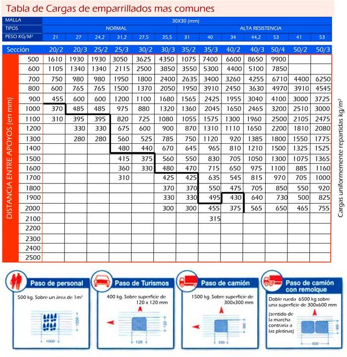 Pletina portante: Aguanta todo el esfuerzo que debe soportar el emparrillado, siendo necesario que estén apoyadas en sus extremos.