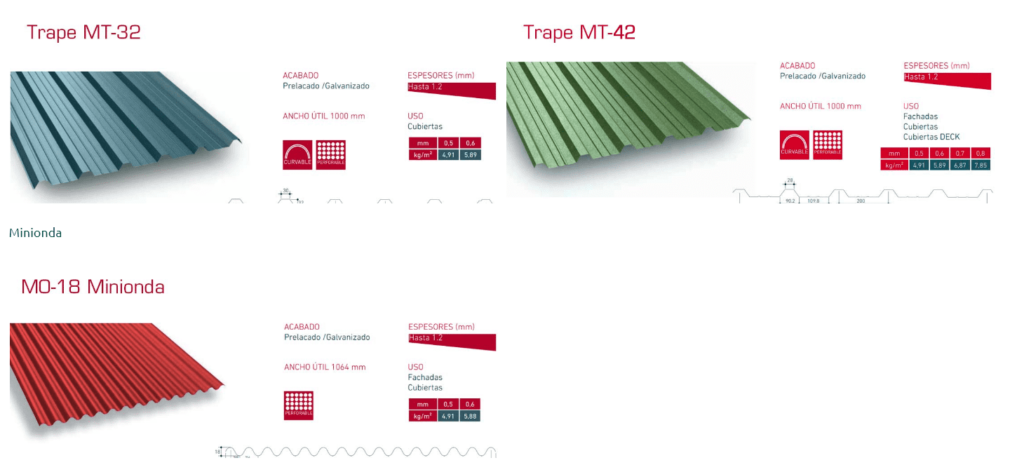 Espesores: desde 1’5 mm a 12 y 15 mm.