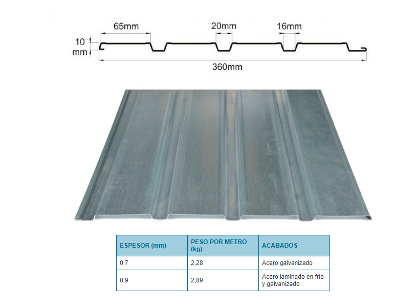 - Las nervaduras longitudinales de la chapa perfilada permiten el alojamiento de instalaciones y canalizaciones del edificio en su interior.